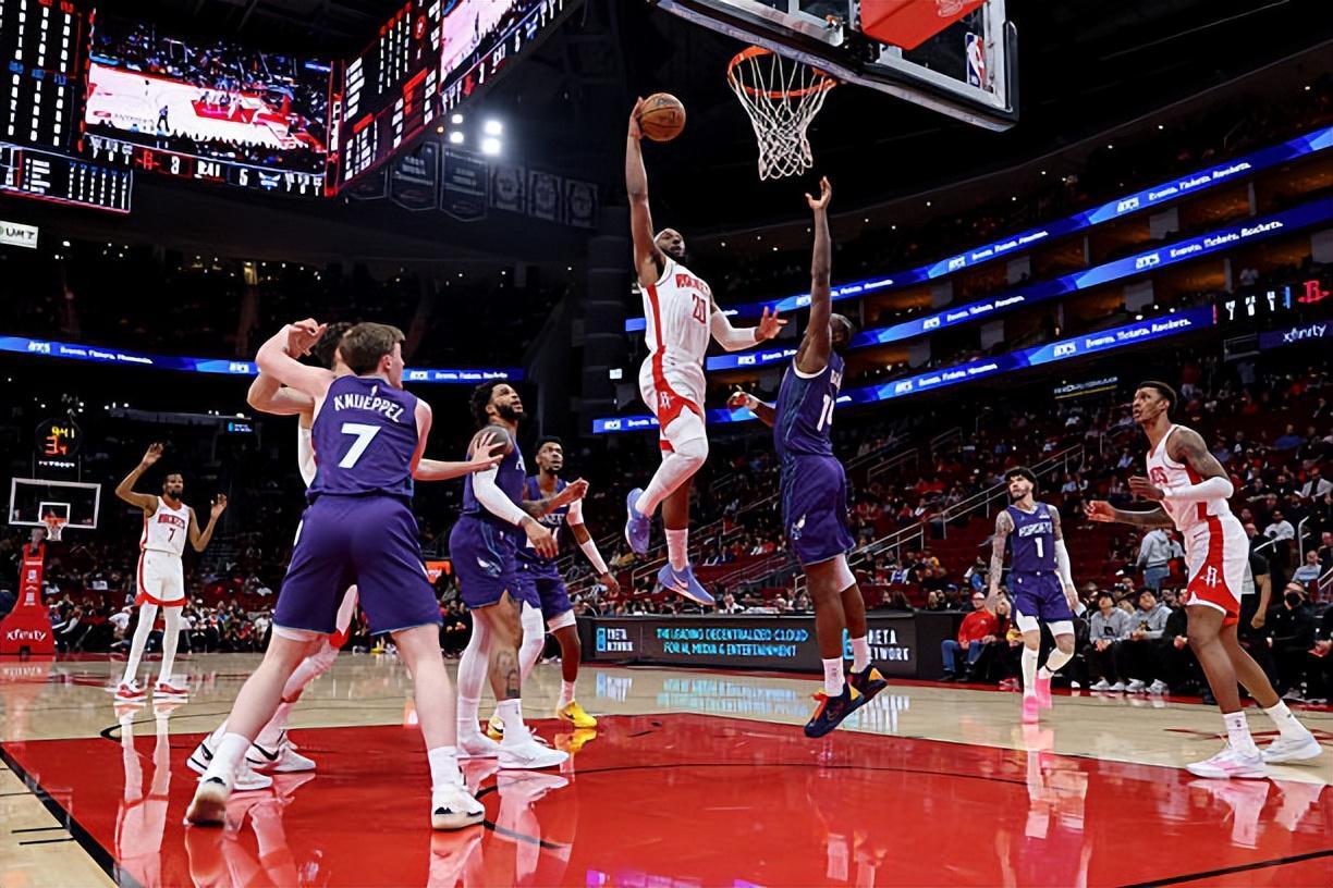 本场比赛中,火箭的先发得分后卫约什-奥科吉(Josh Okogie)面对着自己的老东家看起来非常努力,但是他在场上的实际效果其实是非常一般的。奥科吉全场出场20分30秒,投篮2中2,三分线外1中1,罚球2中1,得到了6分1篮板1抢断的数据,还有1次失误和1次犯规,正负值则是低到了全场最低的-22。奥科吉在进攻端也算是命中了一记三分,但是他的实际得分能力和投射能力大家基本上都知道,所以他在场上时火箭的进攻空间非常受限,其他球员反而打得相当吃力。奥科吉在防守端看起来非常努力,看起来非常积极,但是实际上他在防守端的效果也是非常一般的,也没有起到特别理想的作用。-22的正负值也能够说明一点,奥科吉在场上时球队的局面简直是一塌糊涂。